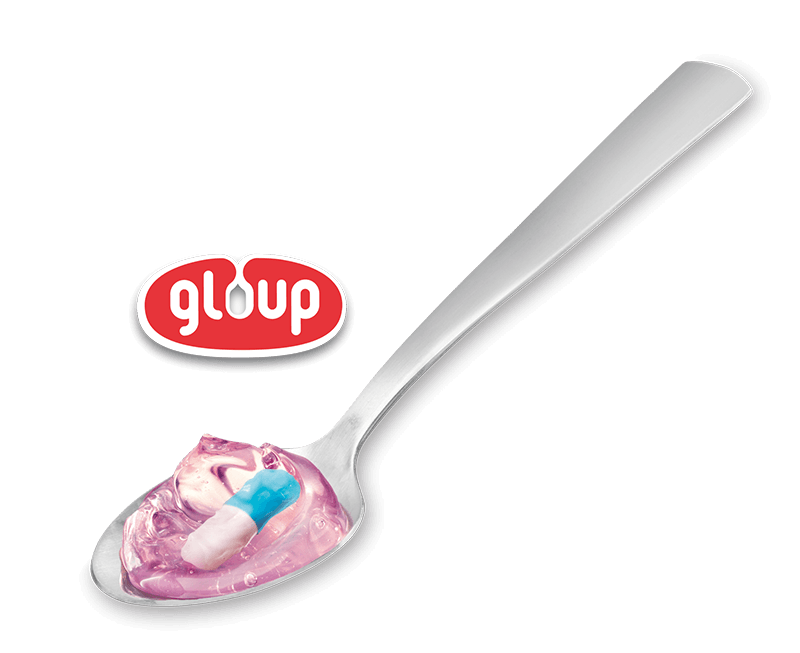 בזכות ®Gloup אין צורך יותר לכתוש את התרופות או ליטול אותן עם מזון. Gloup® מבוסס על מים ומכיל 100% רכיבים טבעיים