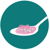 ®Gloup פורטה מותאם למטופלי דיספגיה. כדי לשפר את הבליעה, מומלץ לשמור את המוצר במקרר. בזכות הטמפרטורה הנמוכה נשמר המבנה הסמיך של המוצר אשר מקל על תהליך הבליעה. בנוסף, מומלץ להשתמש בכף. ייתכן ויהיה צורך לכתוש או לפתוח את הטבליות ולהיעזר במוצר. יש להיוועץ עם רופא במקרים אלו.
